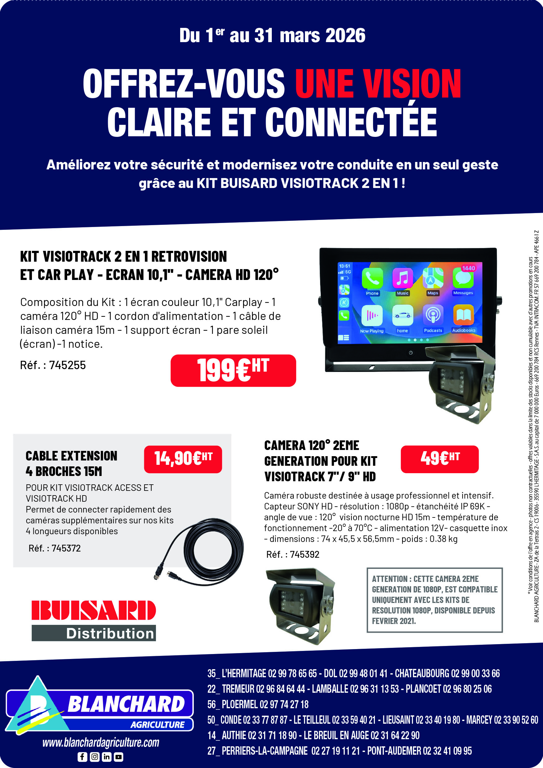 Profitez d'offres exceptionnelles sur les caméras ! le kit VISIOTRACK 2 EN 1 a seulement 199€, pour une conduite plus confortable, plus connectée et plus sûre. Rendez-vous en agence.