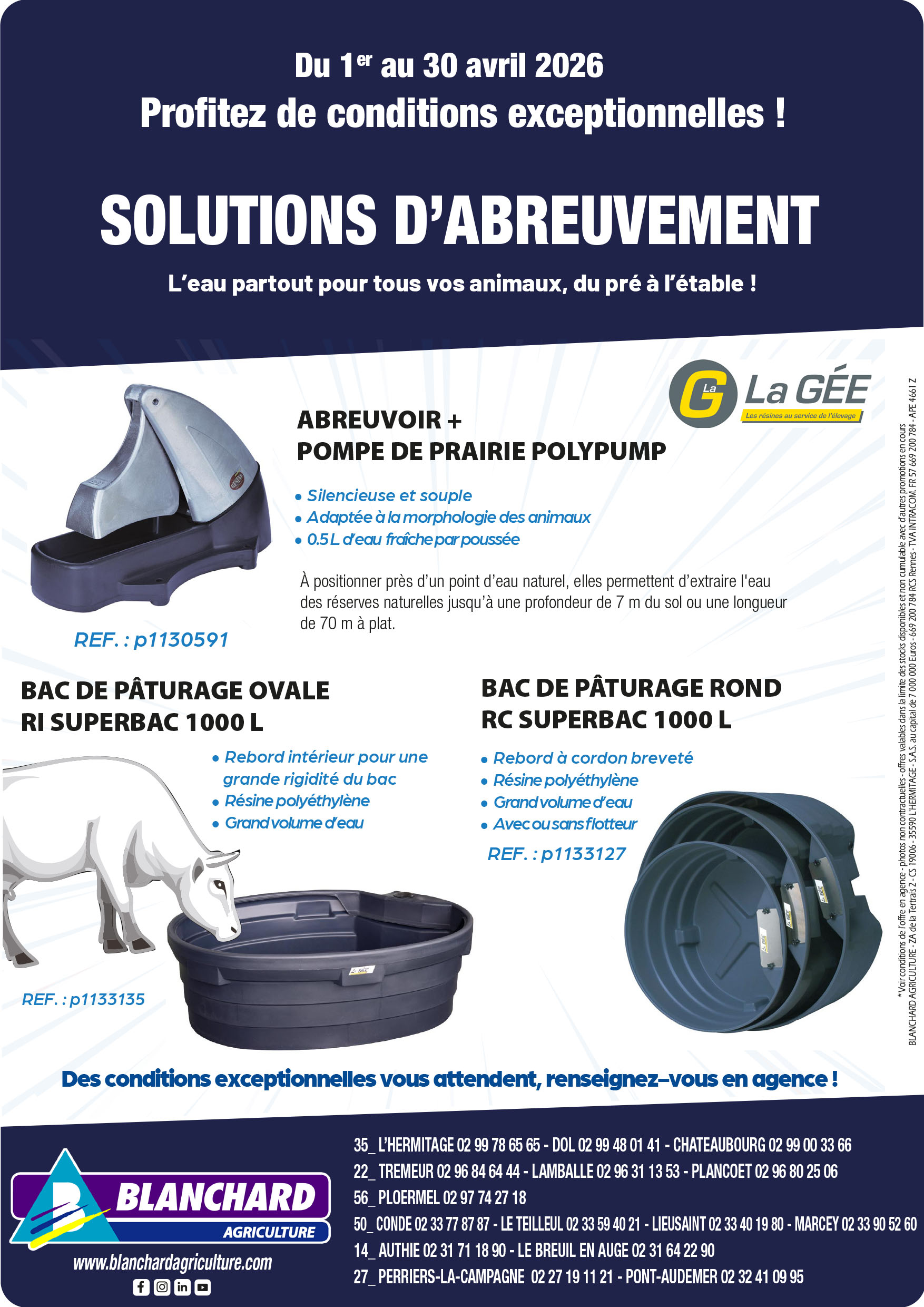 SPÉCIAL ÉLEVAGE : C'est le moment de vous rendre dans votre agence Blanchard Agriculture la plus proche et de profiter de conditions exceptionnelles sur les solutions d'abreuvement.
